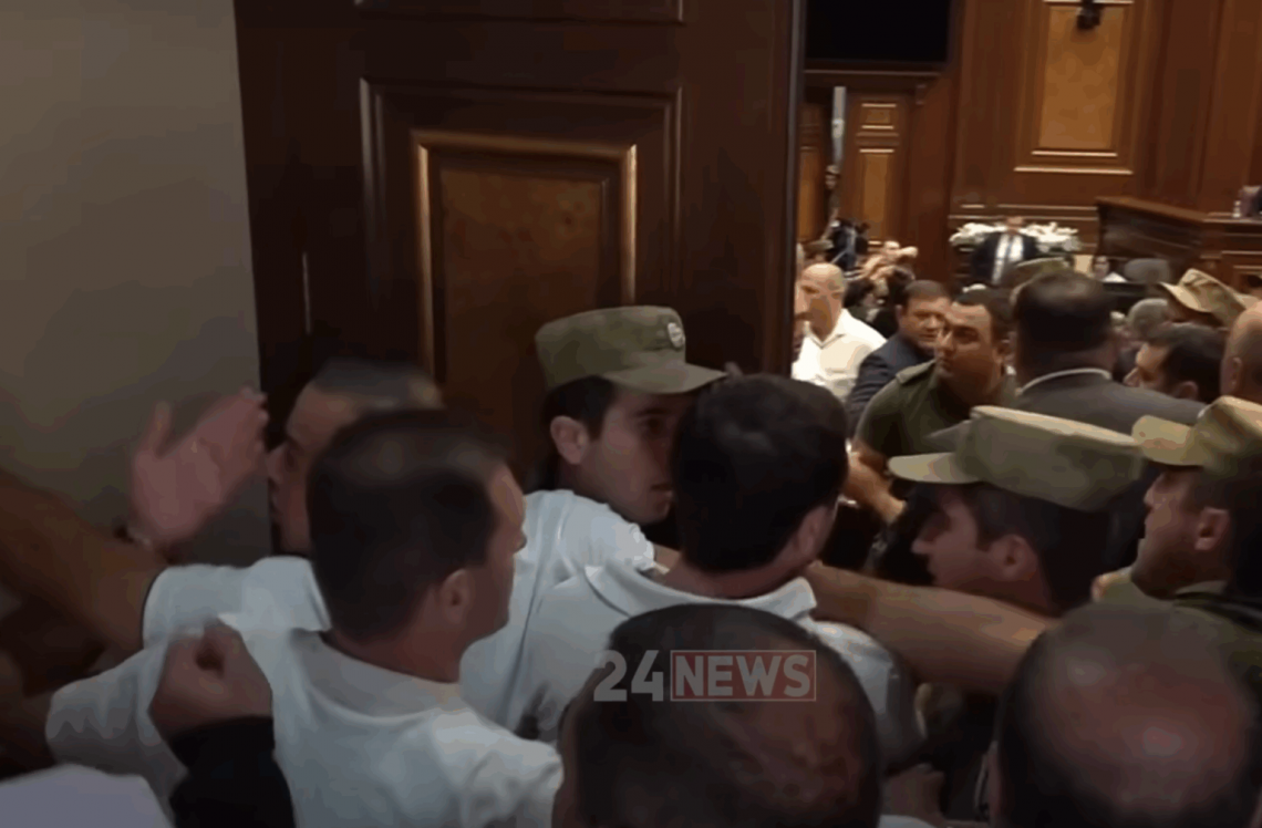 Parlamentul Armeniei s-a transformat marți dimineață într-un câmp de luptă pentru deputați. Spiritele s-au încins în timp ce se discuta despre ridicarea imunității parlamentare și arestarea într-un dosar penal a deputatului de opoziție Artur Sarkisyan, acuzat de complot. După un discurs de la tribuna parlamentului, Artur Sarkisian a declarat că decizia în cazul său este de fapt deja luată de autorități și a încercat să părăsească sala de ședințe. Doar că membrii majorității nu l-au lăsat să plece. Replicile dure s-au transformat rapid în îmbrânceli, iar până la urmă s-au încăierat și asistenții deputaților și agenții de securitate care au încercat să intervină.