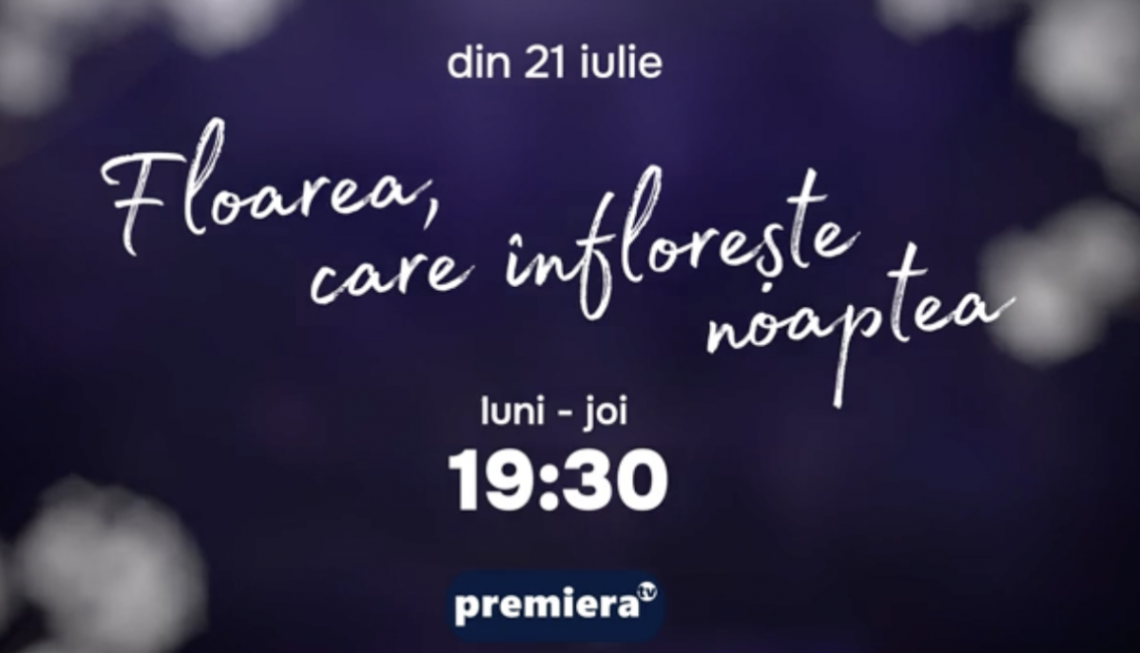 Serialul „Floarea care înflorește noaptea” poate fi urmărit de luni până joi, de la ora 19:30, la PREMIERA TV, începând de astăzi, 21 iulie. În fiecare zi vor fi difuzate câte două episoade.