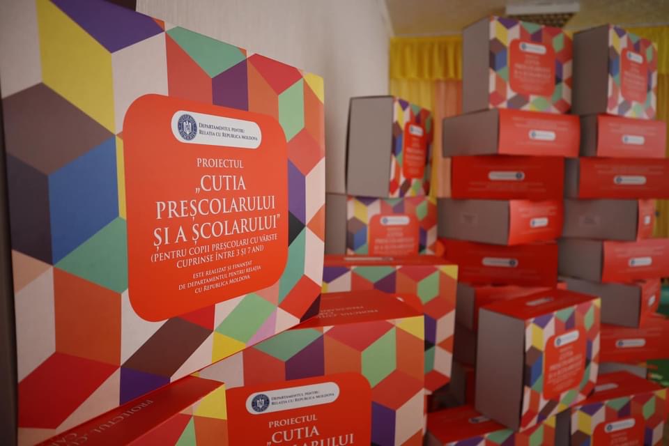 Cincisprezece mii de pachete cu rechizite și cărți vor ajunge, în următoarele zile, la copiii din grădinițele și școlile din Republica Moldova. Donația este oferită în cadrul proiectului „Cutia preșcolarului și a școlarului”, desfășurat de Departamentul pentru Relația cu Republica Moldova.