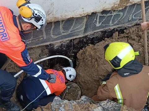 Potrivit salvatorilor, în timpul lucrărilor de izolare a fundației, pământul lutos s-a surpat, iar tânărul s-a prăbușit într-o groapă sub peretele unei case cu două nivele.